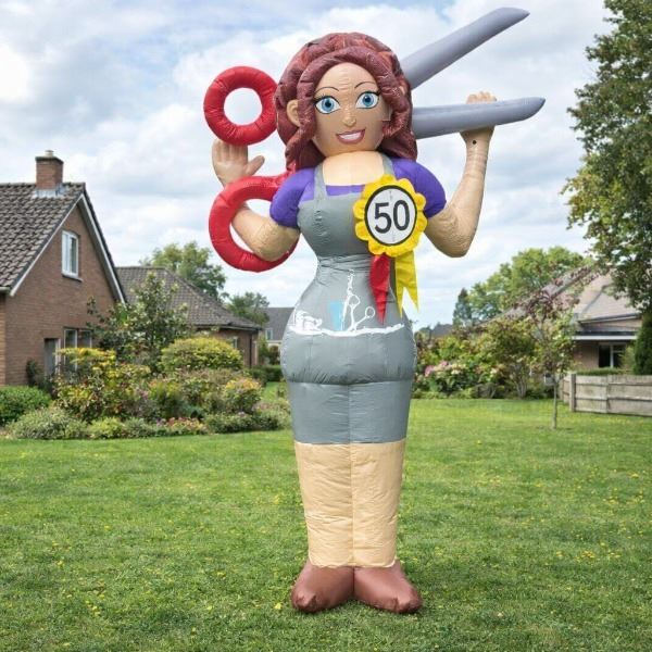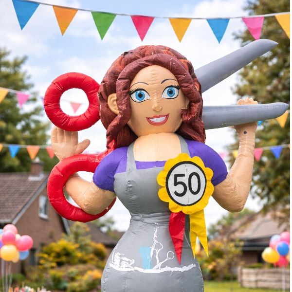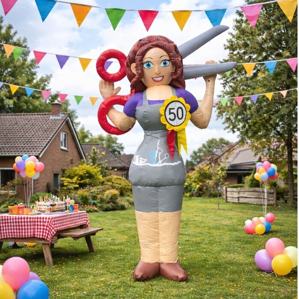 Is de jarige een (ex-)kapster en staat er iets te vieren? Deze opblaasbare Sarah Kapster is een echte blikvanger voor iedere verjaardag of jubileum. Met haar schaar, föhn en vrolijke uitstraling zet je de jarige letterlijk in het middelpunt van de belangstelling.