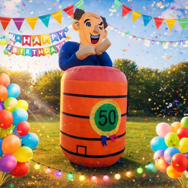 Officieel staat hij voor een 50-jarige, compleet met het leeftijdsverkeersbord 50 jaar.