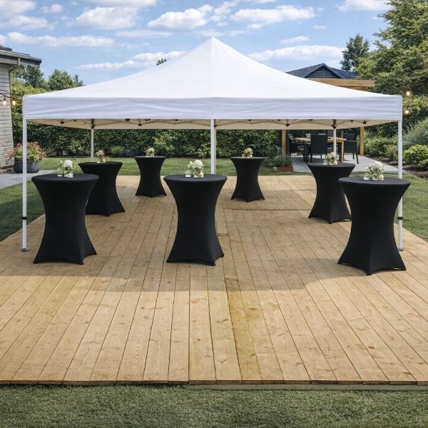 Onze vlondervloer inclusief legservice zorgt voor een stabiele, nette en comfortabele ondergrond onder tenten, statafels en andere eventinrichting. De vloer wordt door ons professioneel gelegd op een vlakke en stabiele ondergrond, zodat je verzekerd bent van een strak en veilig resultaat.